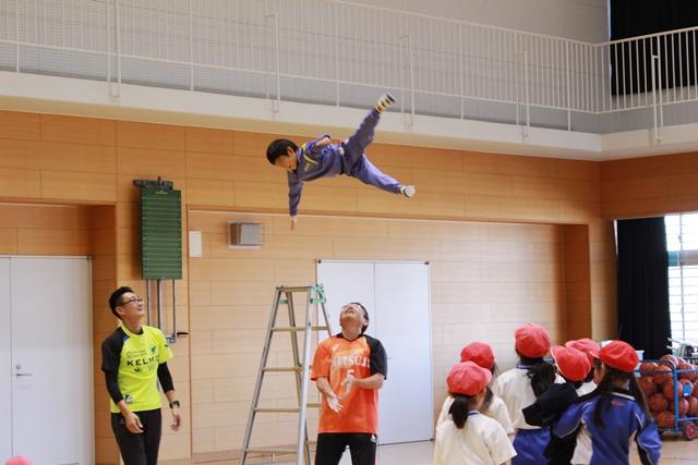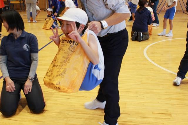 12月2日(土)、「親子で取り組む体づくり」を常葉大学の磯谷仁先生をお呼びして開催しました。自称「スッパマン」先生がサポートしてくれる「たっちゃん」先生と一緒に展開してくださった一時間半は、とにかく誰もが笑顔の時間でした。