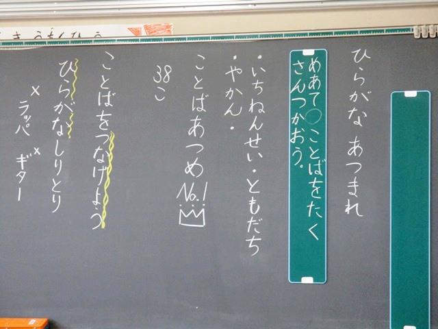 同じことば集めでも、いろいろな方法を使って学習は進みます。ますに並んでいるひらがなの中から「ことば」を見つけて「いくつみつかったかな?」と問う先生からの声に「19」「20」…などと言いながらもっと見つけようと一生懸命なクラス。