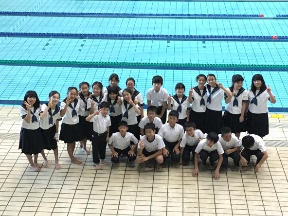 男女100m平泳ぎと自由形は決勝が行われ、本校からは男子平泳ぎにM2木村健くんが、女子自由形にM2松嶋陽希さんが出場しました。結果は、木村君が1分18秒85のタイムで1位。 それまでの1分19秒99の大会記録を破り大会新記録を出してくれました。松嶋さんも6位に食い込み、周りから大きな拍手を受けていました。