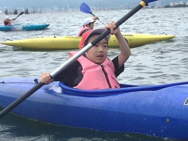 1日目は、ボート体験やカヌーによるヨシ帯観察。1日目の夕方、宿に見に行って聞くと「カヌーが楽しかった」と生き生きと様子を教えてくれました。2日目は、湖生生物の観察やヨシ紙ふえ作り、つりをしながらの外来魚調べ。夜は夕べの集いもしました。3日目は琵琶湖博物館での湖生生物の学習の後に奈良に帰ってきました。