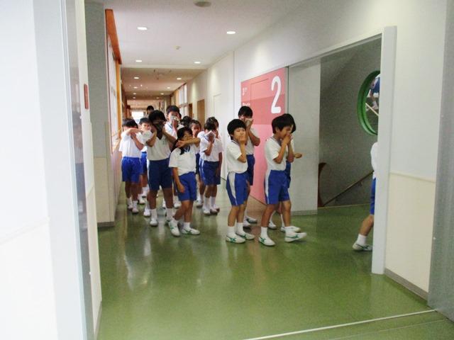 教室で担任からどのような事前指導があったのか、よく分かります。また、それを実行することもできていました。訓練を繰り返し、「自分の命は自分で守ることができる力」を付けていってほしいと、元気に答えてくれる子どもたちを前に考えています。