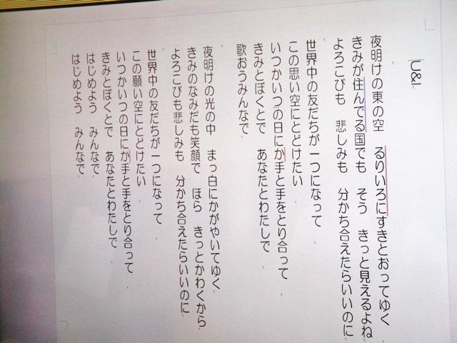 早速音楽の時間を迎えた子どもたちの後ろ姿からは、まだどのように受け止めたのかは伝わってきません。尚志祭での合唱。行事を通してクラスのまとまりをどこまで高めることができるか、あきらめずに挑戦です。