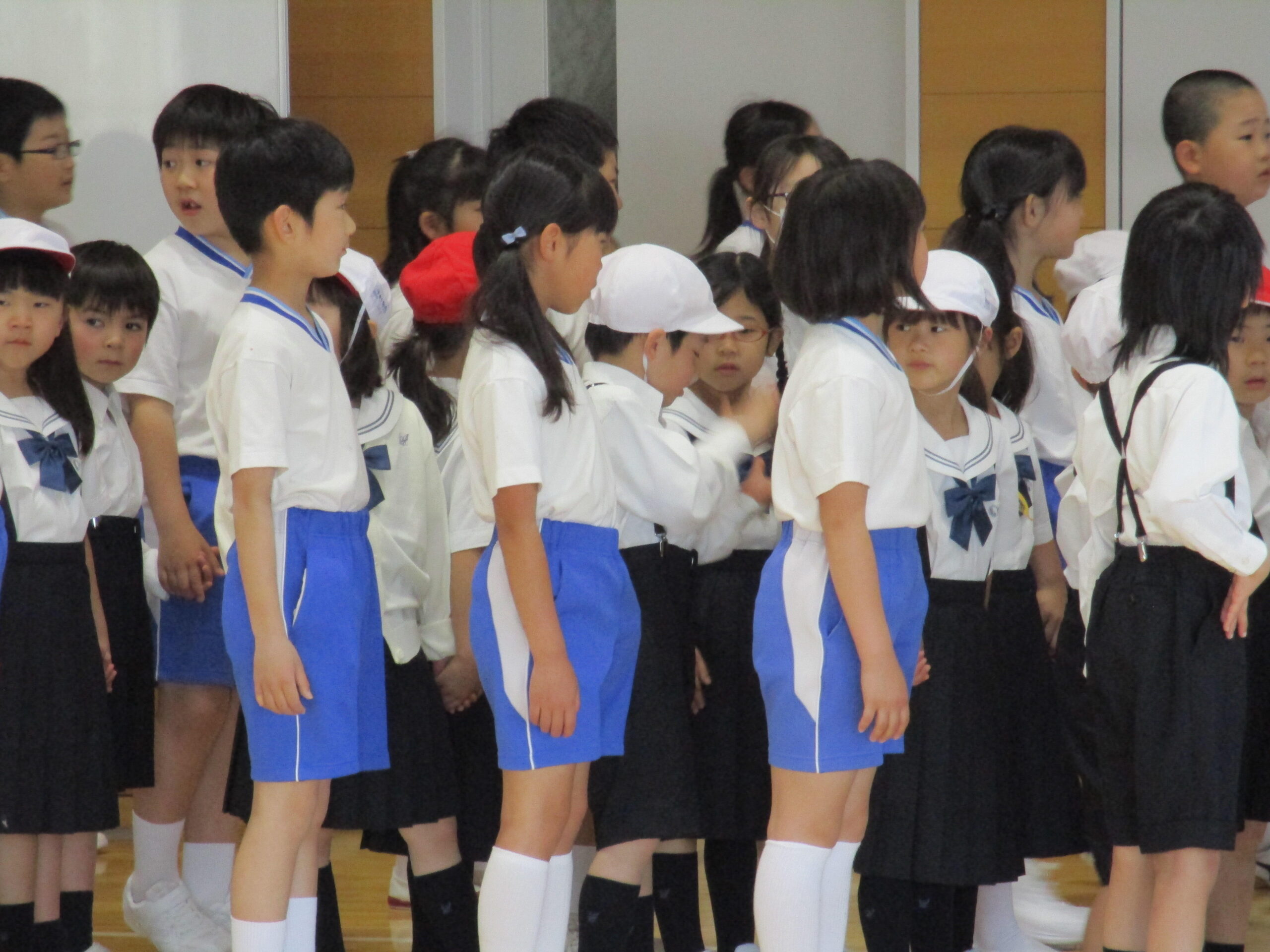 連休明け、P朝礼の時間を使って、「新入生お迎え会」がありました。これは、P4生(4年生)の企画委員6人が中心となって企画し、本日の進行も行ってくれたものです。