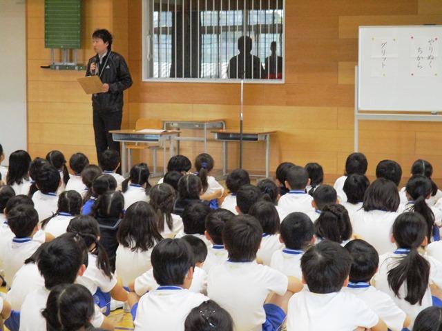 夢を叶えるために大切なのは、「グリッド」=「やりぬくちから」です、ということから子どもたちに話しかけます。先生が小さいとき、自分は天才だと思い込んでいたから(と子どもたちの笑いを誘い…)努力しなかったから努力する人に追い抜かれてしまったのです。そのときに、何か決めたらやり抜く力が大切だとわかったのです。自分の決めた目標は、やり抜いてほしい。眺めているだけではだめです。1年後に、見違えるほどの自信を付けていてほしいと思います…。