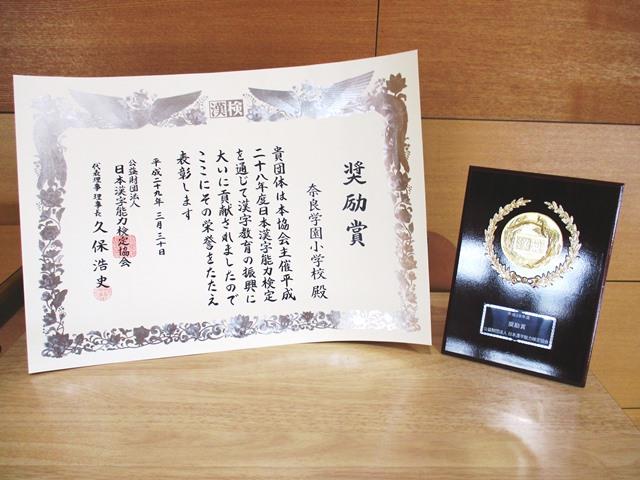 毎週月曜日はP朝礼から始まります。校長から、校訓の一つである「力行(りょっこう)」とは何事にも努力して行うこと、という説明とともに、いろいろなことに挑戦していく気持ちをもって1学期頑張ってほしい、ということを伝えました。昨年、小学校のみんなが挑戦してくれたことをお褒めいただいた、漢字能力検定協会からいただいた奨励賞の賞状と盾の紹介も行いました。今年度の子どもたちの挑戦が楽しみです。