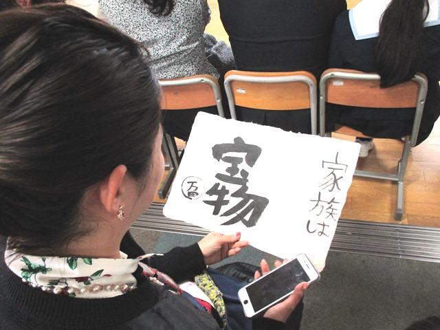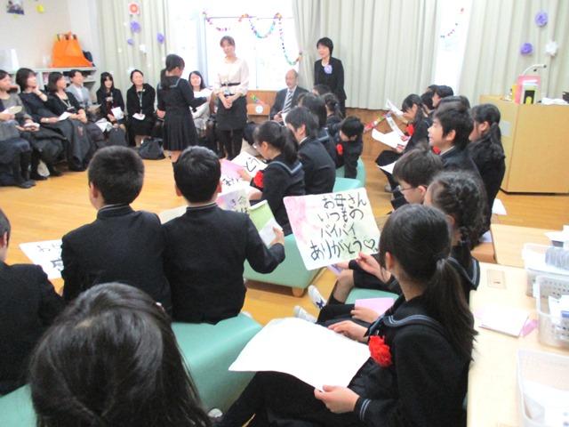 式後に教室に帰ると、そこでは保護者の方への感謝の会が開かれていました。10月に、「福西和紙本舗」の福西正行さんと奥様にご指導いただき、自分たちで手漉きした和紙に家族への感謝の言葉を書いて、保護者の方に手渡しします。添えられた手紙を読む子どもたちの姿に、他の保護者の方も思わずもらい泣きするという場面がたくさん見られました。お父さんは家族のために一生懸命に働き、お母さんは家族の健康を気遣いながらしっかりと皆を守ってくれたこと、病気の時には一晩中看病してくれたこと、Middle課程になったら勉強をもっと頑張ることなど、この4年間の出来事を振り返りながら保護者の方への感謝の言葉が続きました。また、担任の先生から、クラスの一人ひとりの児童に感謝の言葉をかけるという場面もありました。10歳という自分にまず「区切り」をつけるというこの修了式は、P4生たちの大きなステップアップだと言えます。”まだまだ子ども”だけど、その中にしっかりとした彼らの成長を感じることができました。