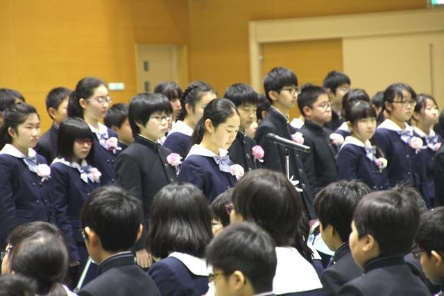 在校生の送辞では、M1の木村君が、M2生たちと一緒に取り組んだ合同運動会や尚志祭、音楽発表会などで教えてもらった団結することの大切さについての感謝の言葉がありました。また、卒業生の答辞ではM2の野川さんが、「たくさんの行事に取り組んできた中で団結することの難しさや喜びを味わいました。立ち止まったり、迷ったりする度に、友だちとの絆の大切さを実感しました。」と語ってくれました。