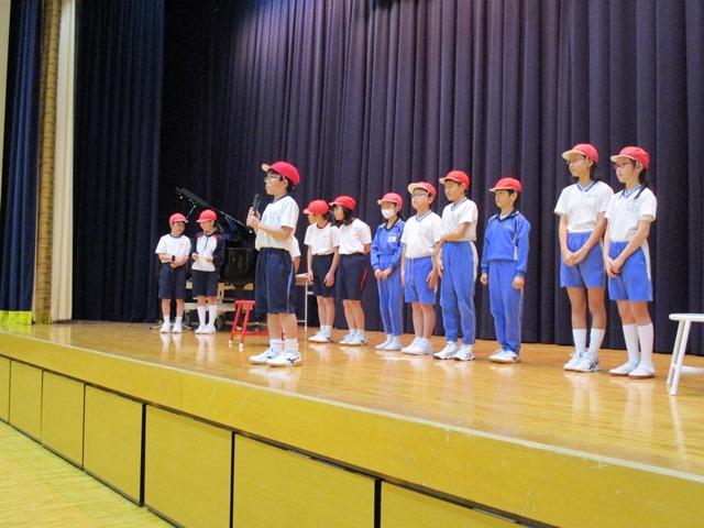 楽しい時間も終わりに近づき、全員で「ビリーブ」を歌った後に、企画委員から、「全体遊びでは優しく接し、委員会では上手にリードし、タテ割り清掃では親切に掃除の仕方を教えてくれました。M2の先輩方、本当にありがとうございました」というM2生へのお礼のことばがありました。これに対してM2生からも、「中学に上がっても皆とのこの関わりを大事にしていきたいと思います。皆さんもこうした企画を続けて行ってください」と御礼と励ましの言葉がありました。楽しく、さわやかな時間を過ごすことができました。