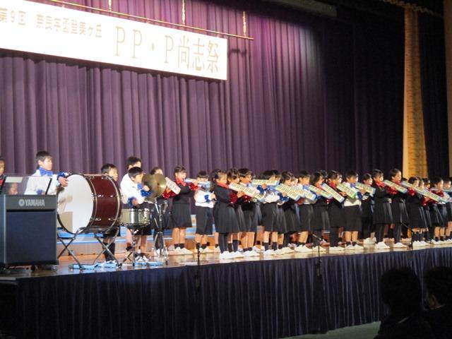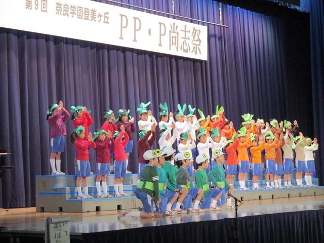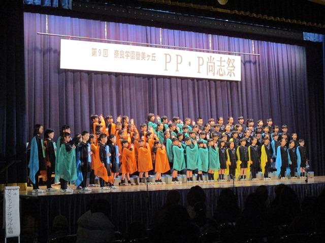 最後はP4(小4)生の「カスタネットアンサンブルと合唱」です。「情熱と愛のステージ」と紹介があった通り、カスタネットの響きが会場全体を包む情熱的な舞台でした。続く合唱では、おかべてつろうさん作詞の『愛をあげよう』が歌われました。カスタネット演奏とは違い、静かでゆったりとした曲なのですが、ここでも溢れるほどの愛が込められていました。優しく静かに終わるこの曲は、今回のPP・P尚志祭の終了を告げるのにふさわしいものだと感じました。