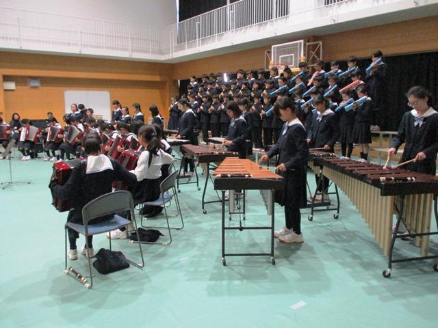 11月26日(土)、M1(小5)生・M2(小6)生が、2学期の音楽の授業での取り組みのまとめとして合同で音楽発表会を開催しました。会場のP体育館には多くの保護者が来場され、児童たちの歌声や演奏に耳を傾けていただきました。