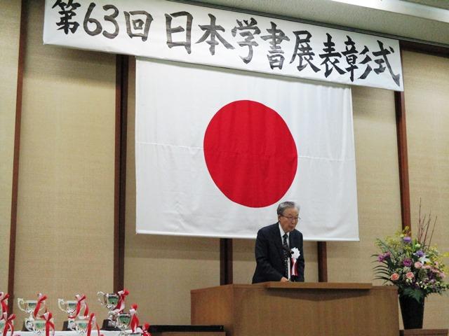 11月20日(日)、奈良市役所で「第63回日本学書展」の表彰式がありました。「学校賞」10校の一つに選ばれたため、代表として私が出席させていただきました。
