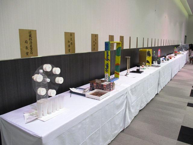 会場には、受賞作と同時に、本校の他の児童たちの作品が3列にわたって並べられており、9月の本校の作品展の時に見た作品たちが、来場した私を歓迎するかのように待っていました。あの作品展の時に「いいな」と思ったものが受賞していなかったり、私がその良さを見過ごしてしまったものが審査員の先生方の目に留まったりしたようで、”発明くふう”という世界はなかなか奥深いものだなと感じました。子どもたちの夏休みの成果がこのような形で評価されることになり、私たちもたいへん嬉しく思っています。受賞した児童だけではなく、全員の子どもたちを褒めてあげたいと思います。