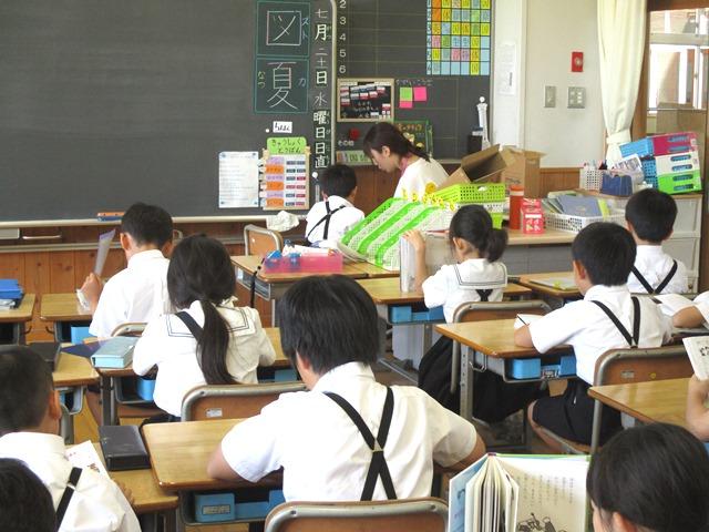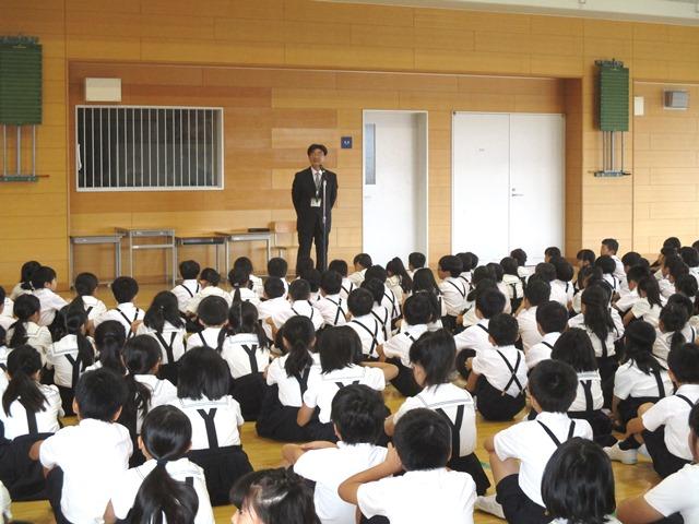 この私の話に続いて、夏休み中の生活について担当のI先生から注意がありました。体作り、勉強、お手伝いなど、自分が決めた課題を「毎日20分、必ず続けよう」、与えられた課題だけではなく、「自分で宿題を作る」という気持ちで、それ以外のことにもしっかりチャレンジしよう、川や海などに行った時には「水の事故に遭わないよう」、お祭りなどに行った時には「迷子にならないよう」、保護者の方とも事前に相談し、十分に気をつけることという話がありました。