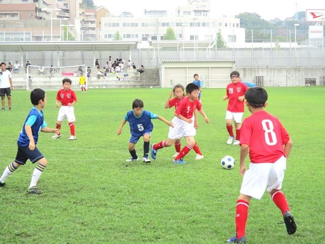 Bリーグでは、フリー参加ということもあって、サッカー部に入ったばかりで、まだまだ慣れないM1(小5)生たちが頑張っていました。特に、自分のところに来たボールは何が何でも足を出すというガッツには優れていると思いました。