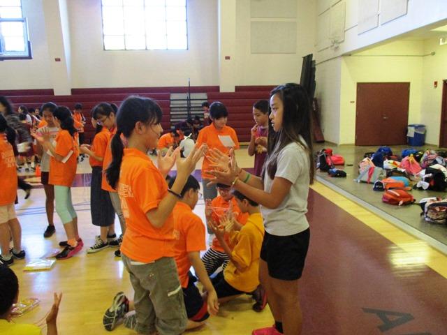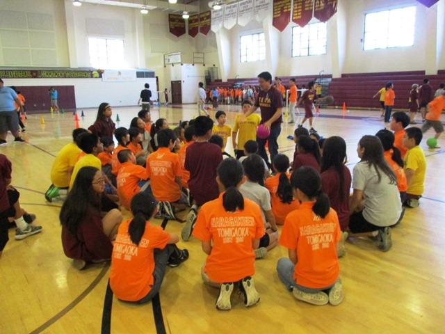 2日目の交流は、昨日ミサが開かれた体育館で、本校が用意した日本の遊びワークショップと、メリノール校が用意したスポーツ交流のプログラムで行われました。日本の遊びでは、あやとり、紙ヒコーキ作り、福笑い、紙相撲、紙風船などを本校生がメリノール生に指導しながら一緒に楽しみました。メリノール生にとっては紙風船を打ち上げることが気に入ったようで、最初は軽く優しく打ち上げていたものが、だんだんと激しい打ち合いになり、お互いにキャッキャと言いながらはしゃいでいました。スポーツ交流では、バスケットボール、サッカー、ドッヂボールのようなもの(なぜかボールが複数ありました)などで、メリノール校の先生の指導の下、慣れるにしたがって両校の児童たちが混ざり合い、助け合い、笑い合い、どんどん仲良くなっていくのが分かりました。