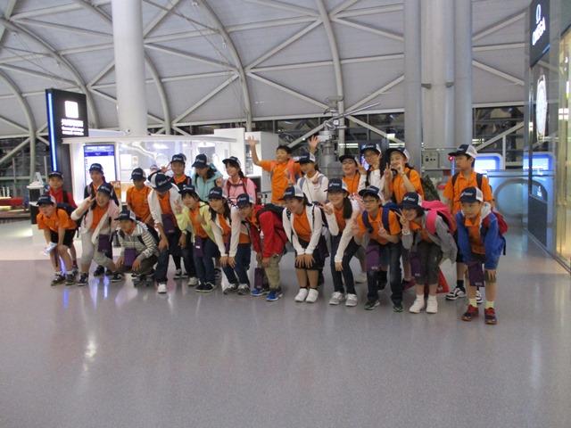 この日、関西国際空港に午後7時、M2生たちは、家族の方と一緒に大きなキャリーケースを転がしながら集合してきました。家族と離れての5泊7日の海外への旅の始まりです。多くの者の表情は期待感と嬉しさに満ちたものに見えましたが、それぞれの胸中はいかばかりかと集まる一人ひとりの顔や態度を見ながら思いやっていました。大きくはしゃぎすぎることもなく、時間には全員が集合を完了しているなど、なかなかスタートとしては順調です。午後7時30分に出発式を行い、ゲートへと向かいました。