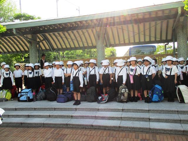 昨日からの夏を思わせる陽気の中、いつものランドセルではなく、愛情たっぷりのお弁当をつめたリュックサックを背負って、P生たちは登校してきました。特に、P1生たちは、小学校に入学して初めての遠足ということで、少し大きめのリュックサックを背負いながらも皆笑顔です。出発前の教室での打合せの時には、児童たちの班や今日の目的を確認しながら、事故なく皆が楽しめるようにと、先生方は子どもたちの気持ちを引き締めるのに懸命になっていました。
