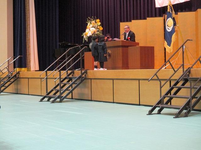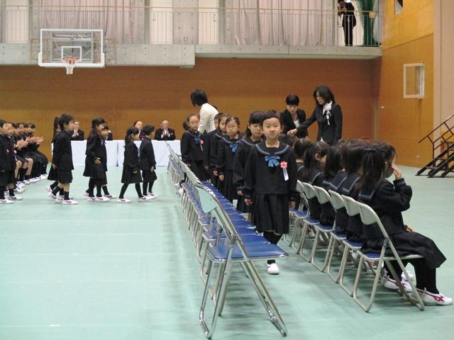 新入生代表の「誓いの言葉」では、代表の小西君と市川さんが「…たくさんのおともだちをつくって、いっぱいあそんで、いっぱいべんきょうします。きゅうしょくもいっぱいたべて、からだをうごかして、もっともっとげんきになります」と二人で元気な挨拶をしてくれました。また、在校生代表の「お迎えの言葉」では新P4の細川さんが、「…小学校は、勉強をする場所ですが、それだけではありません。運動会や遠足など楽しい行事もたくさんあります。私たちと一緒にたくさんの思い出を作っていきましょう。分からないことがあれば、先生や私たちに聞いてください。…」と一つひとつの言葉をかみしめながらとても上手に歓迎の言葉を贈ってくれました。
