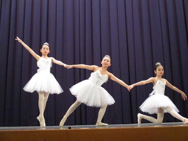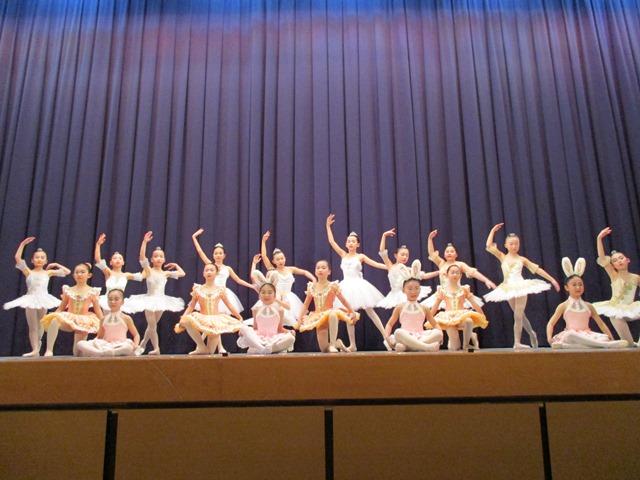 課外講座の参加者は、P1生(小1)5名、P2生(小2)4名、P3生(小3)10名、P4生3名。オープニングでは当日の出演者全員が舞台に登場。何といっても目を引くのはその可愛らしく艶やかなバレリーナ姿です。髪もきちんと整え、化粧もバッチリ。普段の制服姿とは打って変わった様子に圧倒されました。