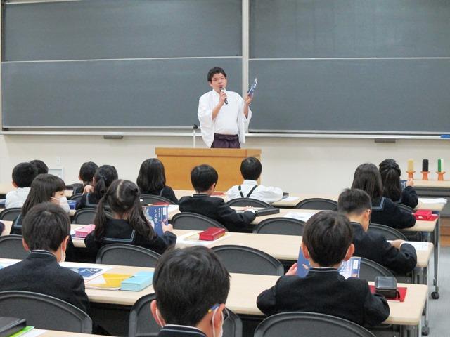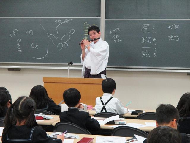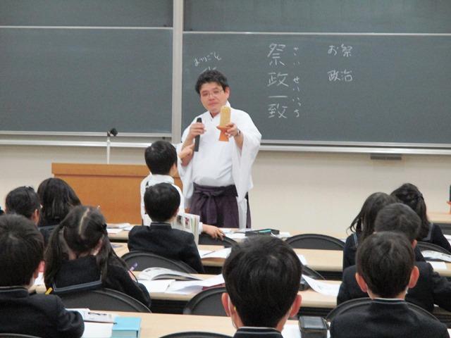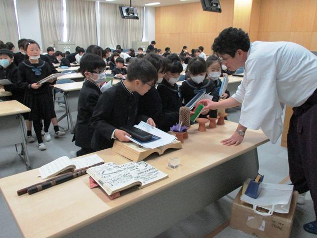 2月24日(水)、春日大社権禰宜の荒井清志さんに来校いただき、P3生(小3)が、国指定重要無形民俗文化財である「春日若宮おん祭」についての話を伺いました。荒井さんは、春日大社宝物殿の学芸員も務めておられ、お持ちいただいたパンフレットには「春日若宮信仰の広がり」という論文も執筆なさっておられる方です。