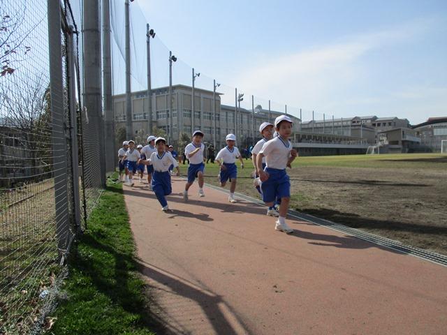 3限目にはP2(約1.5km)、4限目にはP1(約1.2km)が走りました。P2(小2)で驚いたのは、男子のスタート時の全力での飛び出しです。”大丈夫?”と心配になるほどでした。勝ちたいという気持ちからだったのでしょうか、途中で失速する者もいましたが、最後まで勝負にこだわった者が多かったようです。