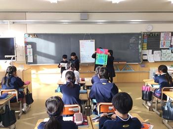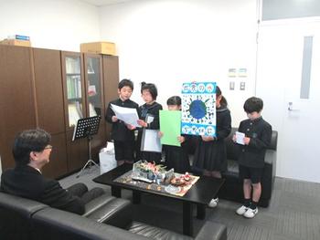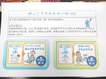 1月13日(木)の朝、P3の児童たちが校長室に来て、18日(月)から開始する全校一斉節水活動についての説明をしてくれました。
