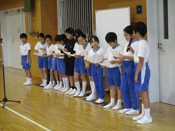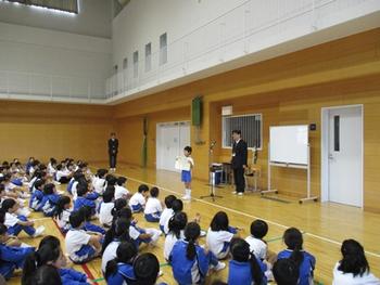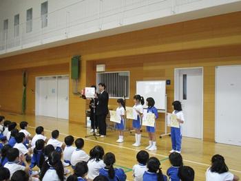 この日の朝礼では、環境委員会からヒヤシンスの水栽培に取り組む事の報告があったり、第62回日本学書展特選(P2廣田さん・阿品さん、P3奥内さん・土井さん)の表彰式と学校賞の披露があったり、第9回「いつもありがとう」作文コンクール(P2中嶋くん)の表彰式があったりして、時間ギリギリまで続きました。先生たちやP生たちが、お互いの頑張りを讃え合う朝礼になりました。他の児童たちもどんどん後に続いてください。待ってますよ。