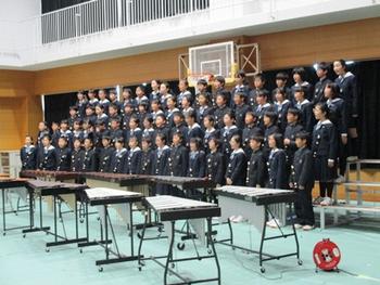 最後の合同合唱「青い鳥」はなかなか壮観でした。この歌は、合唱に青春をかける高校生たちの姿を描いた『うた魂♪』という映画の主題歌だそうです。小学生にとってはなかなか難しい曲だということですが、M1生・M2生は見事に息を合わせて歌い上げてくれました。皆で一つの曲に取り組むこと、息を合わせて美しいものに仕上げることは、この年代の子どもたちにとってとても大切な心の成長につながると思います。人に聴かせる喜びだけではなく、一人ひとりの心に響く演奏であったことを願っています。