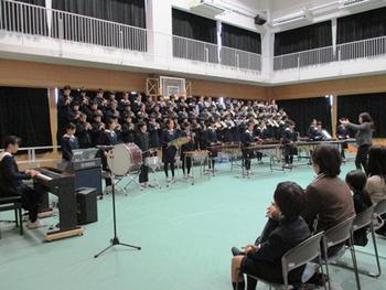 M1生は、「ぼくらの世界(合唱)」「COSMOS(合唱)」「もののけ姫(リコーダー奏)」の3曲、M2生は、「明日という日が(合唱)」「パート・オブ・ユア・ワールド(リコーダー奏)」「いのちの歌(合唱)」「バック・トゥ・ザ・フューチャー(合奏)」の4曲、そしてM1・2合同の「青い鳥(合唱)」というプログラムでした。