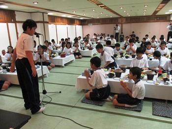 大久野島を後にしたM1生たちはバスで広島市内のホテルへと向かいました。初日の夕食は、唐揚げに、ハンバーグに、広島焼に、そうめんにと盛りだくさん。雨で冷えた身体には良いエネルギー補給ができそうです。私は、ちょっと意地悪く、終了後の彼らの食べ残しを見て回りました。皆が、すべてをきれいに平らげているとは思いませんでしたが、それにしても「う~ん!?」という感想です。食べ残し方がどうもきれいではありません。何杯もお代わりしたのはよいけれど、結局は食べ残されたご飯や少しかじっては皿に転がされているおかずなど、”残してごめんなさいね”という気持ちがどうも現れていません。夜の教員ミーティングでは、こんな点を先生方と語り合いました。