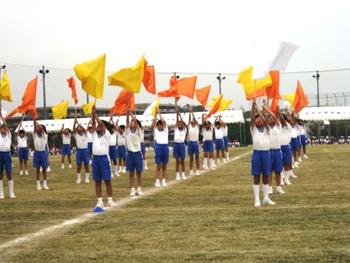 午後にはP3とP4の表現演技がありました。P3のテーマは「太陽~心をひとつに~」。児童たちは、白・黄・橙の旗を持って登場してきました。それらの旗を、体を精一杯使ってのびやかに振るダンスは、午後になってやや風が出てきたこともあり、とても優雅で、かつ迫力のあるものでした。