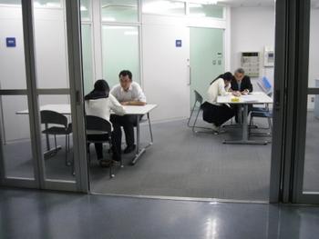 職員室に戻ってくると、カウンター前の質問スペースにいつもの光景があった。奥の相談室にも質問者に対応している教員がいるようだ。放課後直後は満員になるこのスペースだが、午後5時30分を過ぎた今は教員を一人占めできる時間であるようだ。