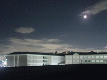 希望したP4生たちは18:30に学校に集合。まず大講義室で理科の先生から観測についての注意とこの日の天体の様子についての説明を受けた後に、Y棟屋上にある天体観測ドームへと移動しました。ドーム内はスペースに限りがあるので、ドーム内で望遠鏡を見る班、南東の空を肉眼で見る班、北西の空を肉眼で見る班と3つの班に分かれ、それぞれの場所で理科の先生から解説を受けました。