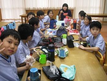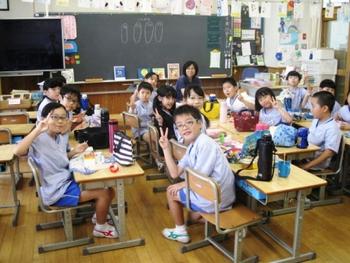 また、ランチタイムのもう一つの楽しみは、おしゃべり。私が回っていくといろいろなことを教えてくれました。最も盛り上がったのは、今日保護者の方が何時に起きてこのお弁当を作ったのかという話題。「6時!、5時!、4時!」とどんどん時間が早くなっていきます。早朝から皆さん苦労されたんだなあと思い、彼らに代わって頭を下げたい思いでした。中には、「早く起きて自分で作りました」と教えてくれる子もいて、思わず大きな声で「えらい!」と叫んでしましました。