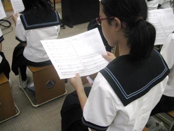 歌っている途中に顧問の先生から指示が飛びます。リズムや音程のことだけではなく、大切なのは言葉をうまく音楽に乗せること、言葉の繋がりを意識することのようです。合間に児童たちはその指示を楽譜に書き込みながら、一生懸命に歌の内容や歌い方を理解していこうとしていました。