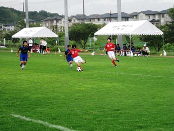 前々日の台風11号の影響がまだ残り、すっきりしない天候でしたが、強い日差しがなく、熱中症の心配が少ないのが幸いでした。また、芝生のコンディションもまずまずで、訪れた他校の児童たちも広い天然芝のグラウンドに喜んでいました。