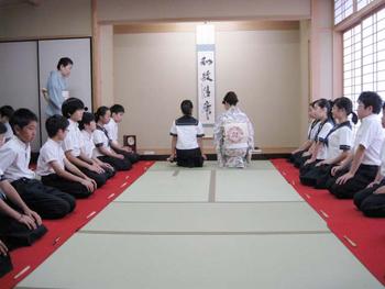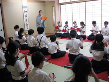 また、先に席についた者は早くも足のしびれと戦っています。おやおやと思いながらも、私も正座は苦手で、貴重な体験と思いながらも、児童たちにちょっと同情してしまいました。