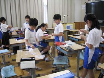 その隣の教室ではベルマーク委員会が開催されていました。皆楽しそうに作業をしています。尋ねてみると、切り取ったベルマークを点数ごとに分類して入れる容器を作っているとのこと。たくさん入れていただけるといいねと声をかけさせてもらいました。
