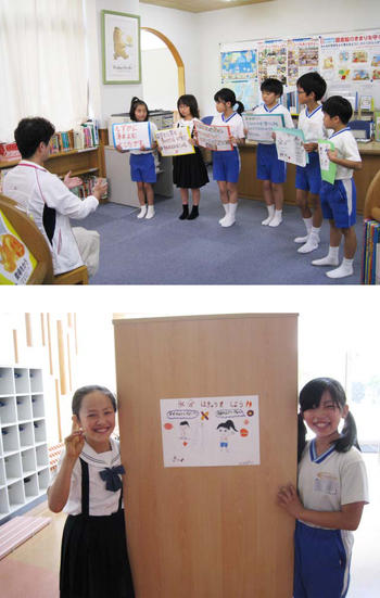 P図書室では図書委員会が行われていました。P1生(小1)に図書室の使い方や注意を説明し、さらに絵本の読み聞かせをしようということで、皆でその練習をしているところでした。さすが、先輩たちだと思いつつも、もっと大きな声を出さないとP1生は聞いてくれないぞと心配の気持ちもわきました。