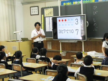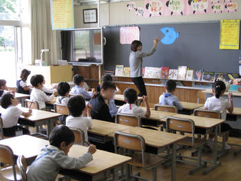 国語ではしりとり遊び・音読・運筆を、算数ではかたち遊びや数カルタを行いました。感心したのは、どのクラスもみんな行儀よく、しっかりと話が聞けていること、そして、言葉も数もよく知っていることでした。普段からお話が好きで、自分で本を読むことも好き、よく保護者の方と会話し、いろいろな体験をしてきているのでしょう。
