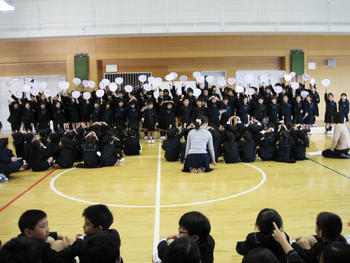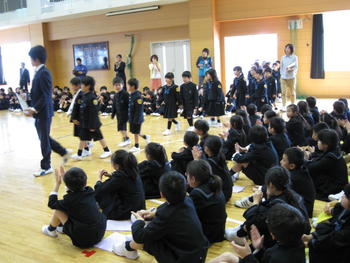 2番目はP3生。「群読」の発表です。「心のビタミン」、「曜日歌」、「教室はまちがうところだ」などの詩の発表がありました。P3生の熱のこもった群読を、じーっと見つめるP1生。言葉や内容の理解は十分ではなかったかもしれませんが、みんなで声をそろえて詩を読むって、楽しそうだなあという表情でした。