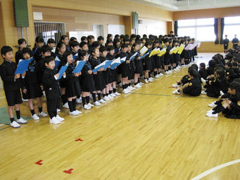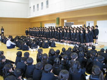 最後はP4生の「合唱」です。曲は「スタートライン」。さすがP4生ともなると、姿勢が良く、声の出し方や曲の盛り上げ方などがとても上手でした。新しい”スタートライン”に立ったまだ小さなP1生たちを励ましながら、♪青空の真ん中に飛行機雲、青空の真ん中に真っ白いスタートライン♪ と彼らは歌ってくれました。素敵な合唱でした