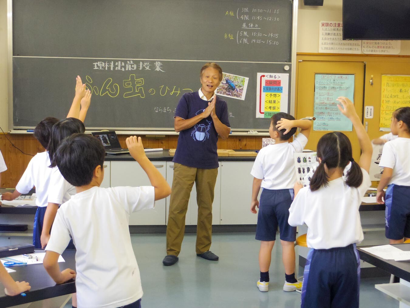 P3(小3)生を対象に理科の出前授業を行いました。講師にお迎えしたのは、ならまち糞虫館の館長でフン虫王子として活動している中村圭一さんです。