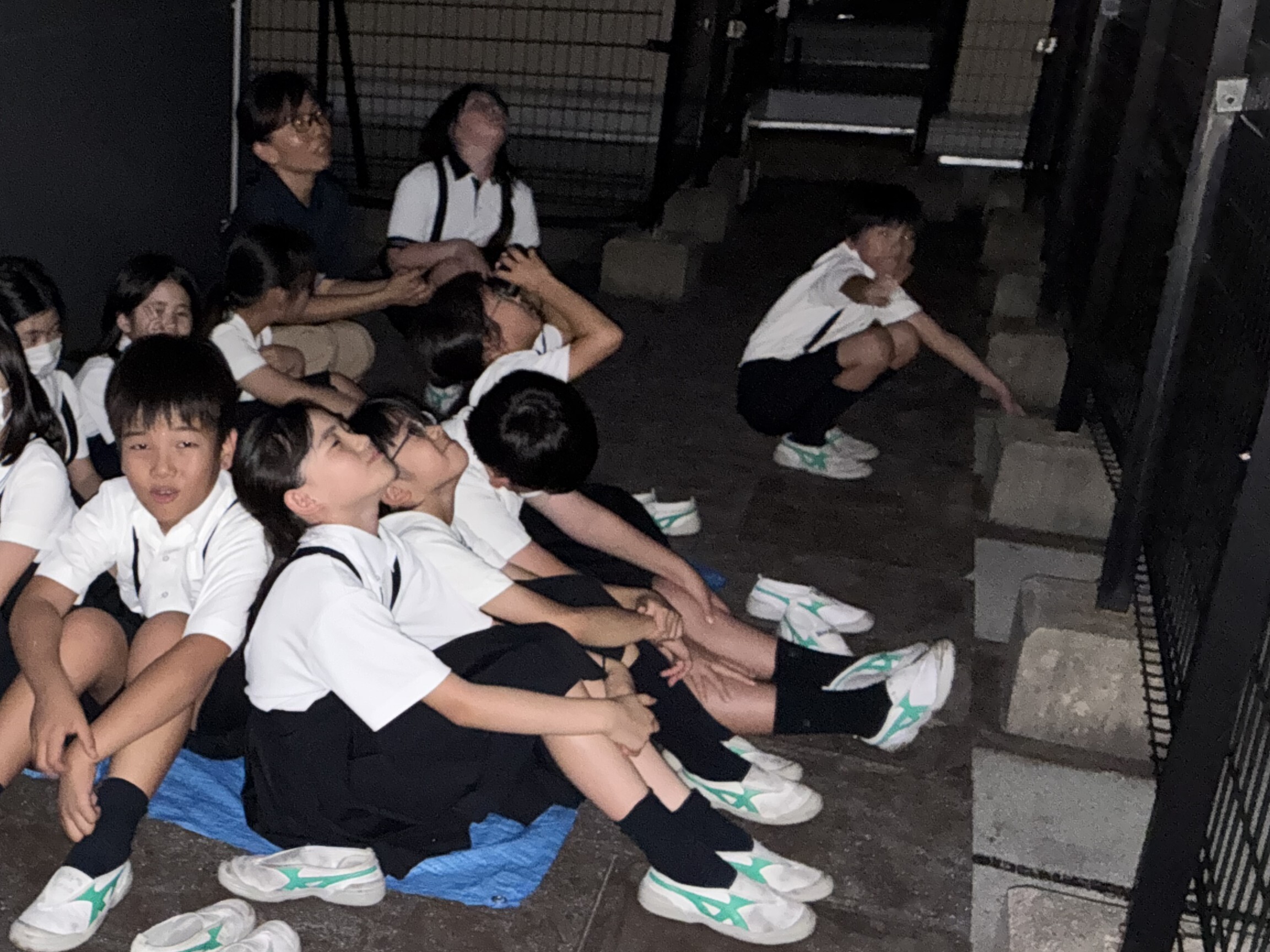 P4(小4)生が天体観測を行いました。子どもたちは、普段は入ることのできない夜の学校に集まり、「夜の学校ってドキドキするね!」とワクワクした様子で観望会の始まりを楽しみにしていました。