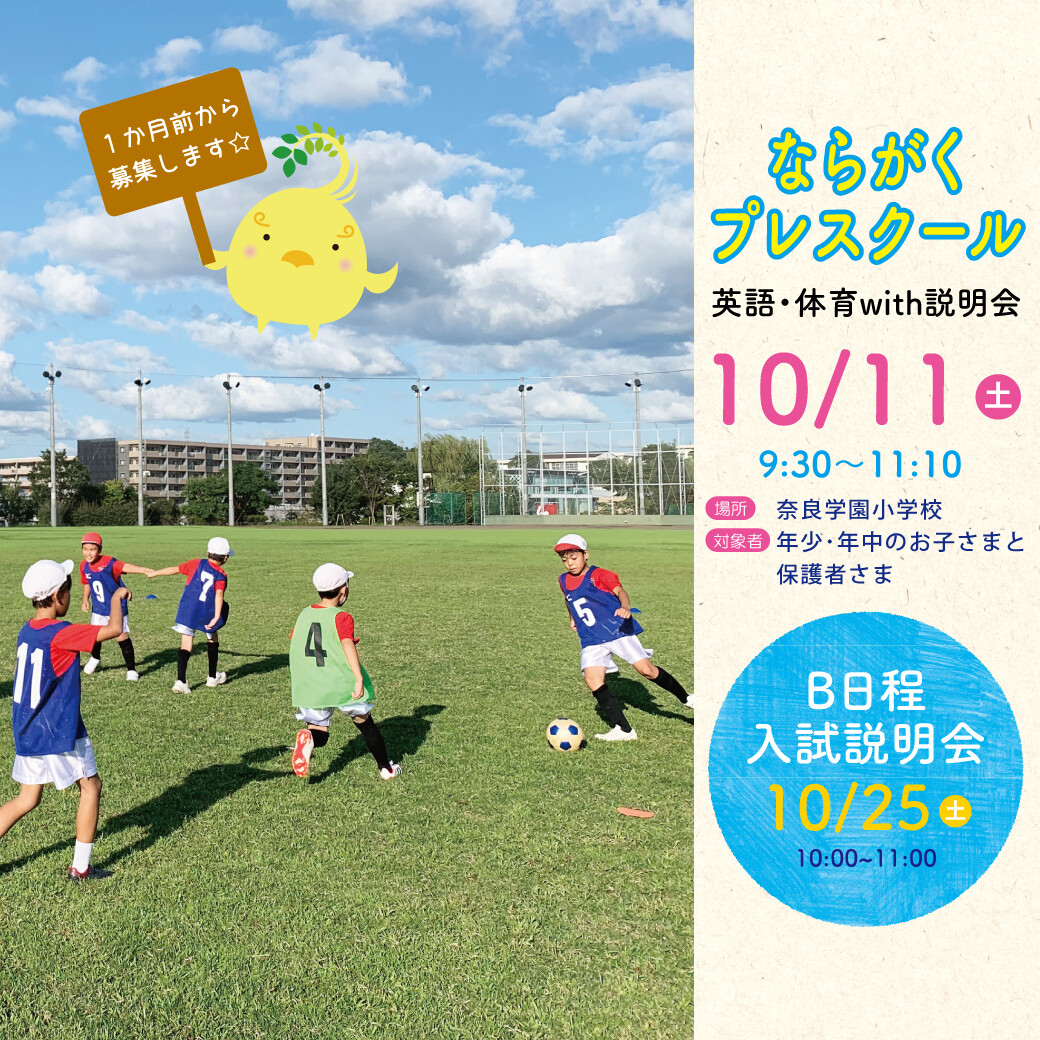 10/11(土)ならがくプレスクール 英語・体育with説明会のご案内
