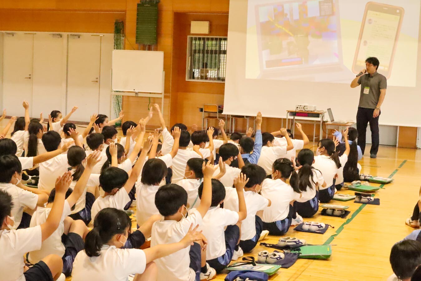 授業の冒頭、講師の先生が「自分のスマホを持っている人?」「SNSを使っている人?」と問いかけると、多くの児童が手を挙げ、インターネットやSNSが日常生活に深く入り込んでいる様子がうかがえました。