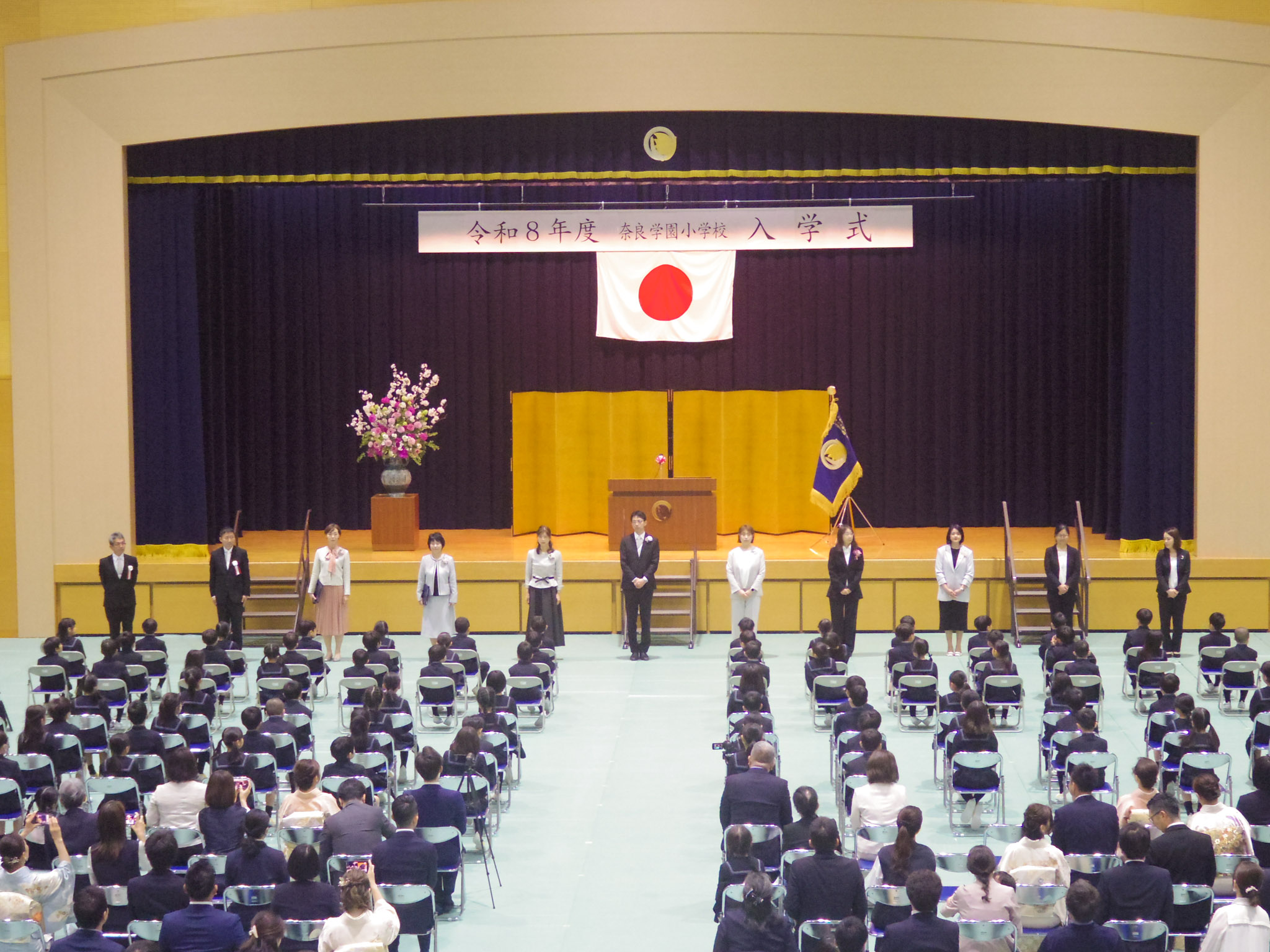 令和8年度奈良学園小学校入学式を執り行いました。プロムナードの桜も満開となり、新入生と保護者の皆様を歓迎しました。