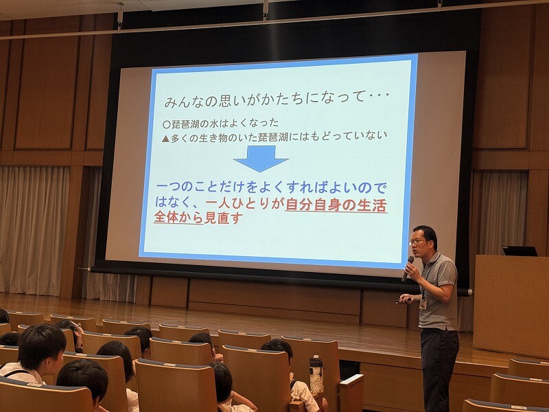 事前学習として、子どもたちは琵琶湖の大きさや歴史、住む生き物や環境などを調べました。