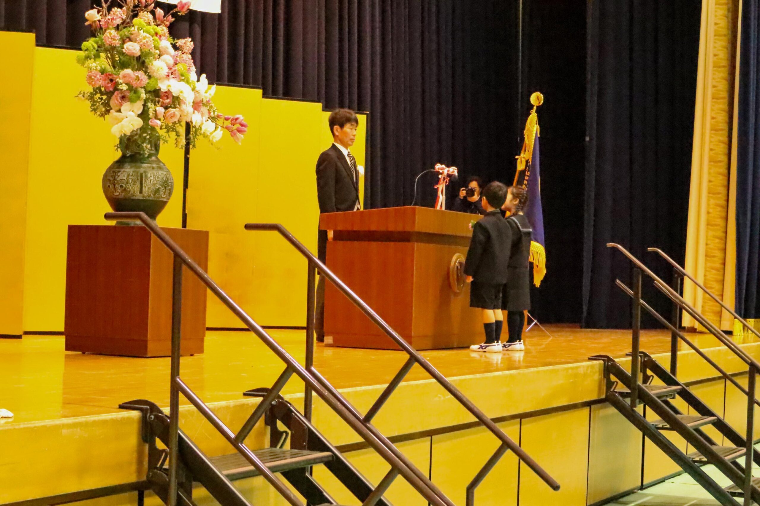 続いて、新入生代表が「みんなで楽しくがんばります。よろしくお願いします」と元気に宣言。児童を代表してP4(4年)生代表からは「今は緊張していると思いますが、これから楽しいことがいっぱいあります。一緒に楽しみましょう」と温かい「お迎えの言葉」がおくられました。