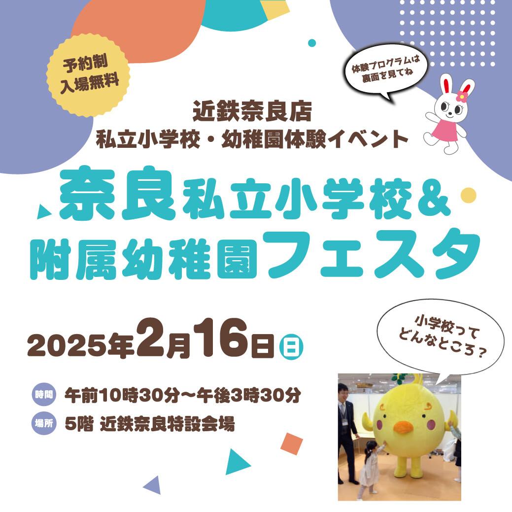 2/16(日) 近鉄奈良店「奈良私立小学校&附属幼稚園フェスタ」に参加します